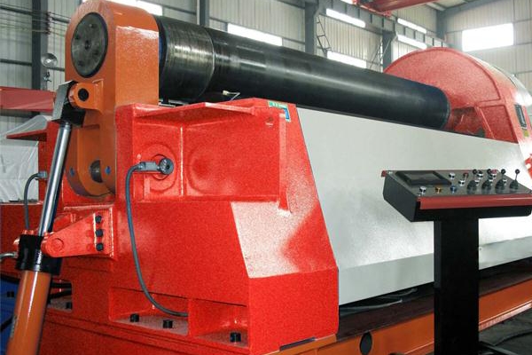 卷板機(jī)是對(duì)板料進(jìn)行連續(xù)點(diǎn)彎曲的塑形機(jī)床。卷板機(jī)上輥在兩下輥中央對(duì)稱(chēng)位置通過(guò)液壓缸內(nèi)的液壓油作用于活塞作垂直升降運(yùn)動(dòng),通過(guò)主減速機(jī)的末級(jí)齒輪帶動(dòng)兩下輥齒輪嚙合作旋轉(zhuǎn)運(yùn)動(dòng),為卷制板材提供扭矩。 三輥對(duì)稱(chēng)卷板機(jī)主要特點(diǎn):該機(jī)上輥可以垂直升降,垂直升降的液壓傳動(dòng),通過(guò)液壓缸內(nèi)的液壓油作用活塞桿而獲得;下輥?zhàn)餍D(zhuǎn)驅(qū)動(dòng),通過(guò)減速機(jī)輸出齒輪嚙合,為卷板提供扭矩,下輥下部有托輥,并可調(diào)節(jié)。上輥呈鼓形狀,提高制品的直線(xiàn)度,適用于超長(zhǎng)規(guī)格各種截面形狀罐。